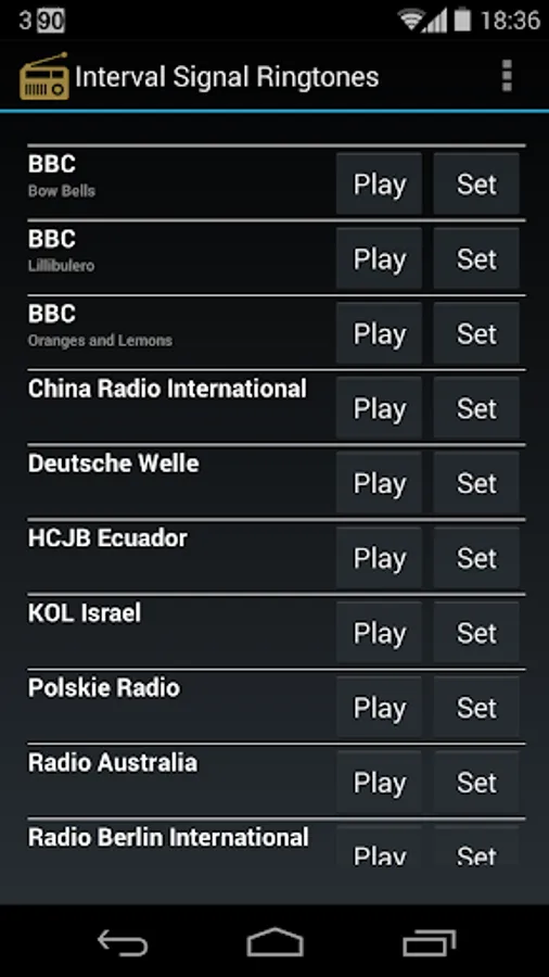 Have your favourite interval signals from shortwave stations current and long gone as your phones ringtone.