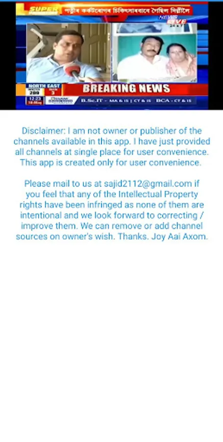 Please mail to us at sajid2112@gmail.com if you feel that any of the Intellectual Property rights have been infringed as none of them are intentional and we look forward to correcting / improve them. We can remove or add channel sources on owner's wish. Thanks. Joy Aai Axom.