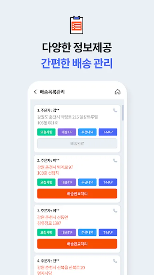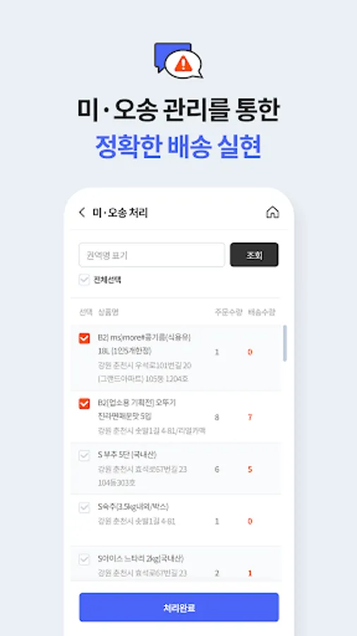 Delivery area management, dispatch management, product inspection, delivery completion management, etc.