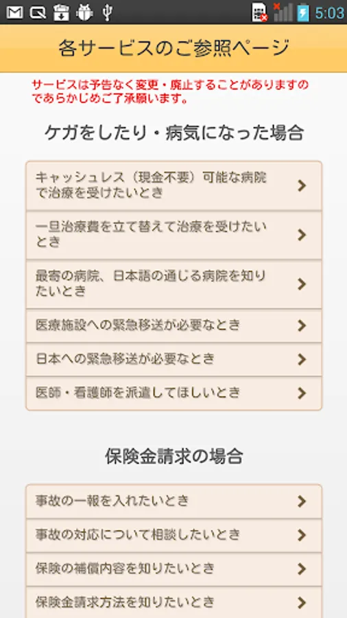 そんな海外でのトラブルに対応する「ネットde保険@とらべる」のさまざまなサービスの内容やサービスを受ける方法が確認できます。