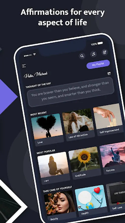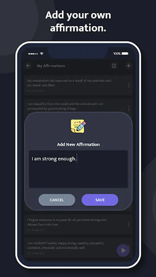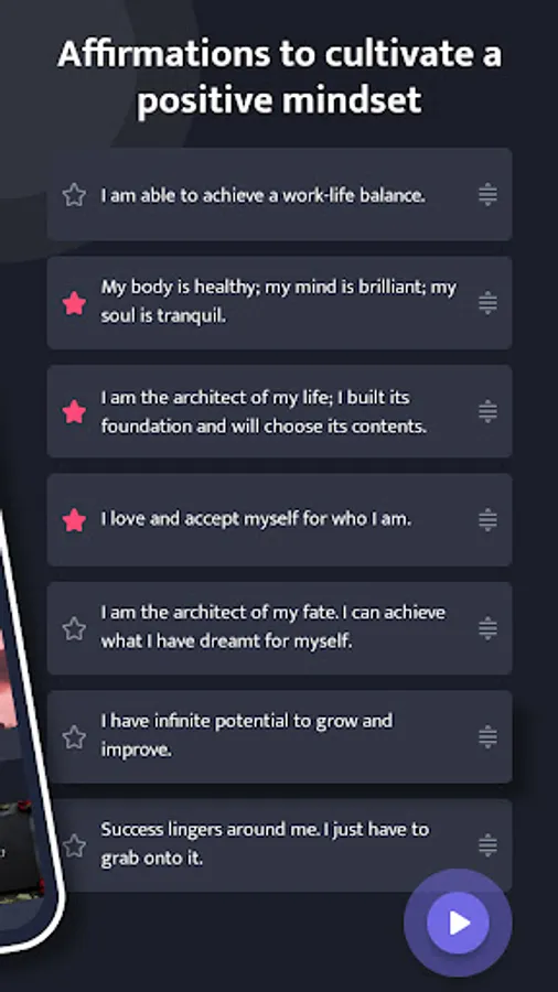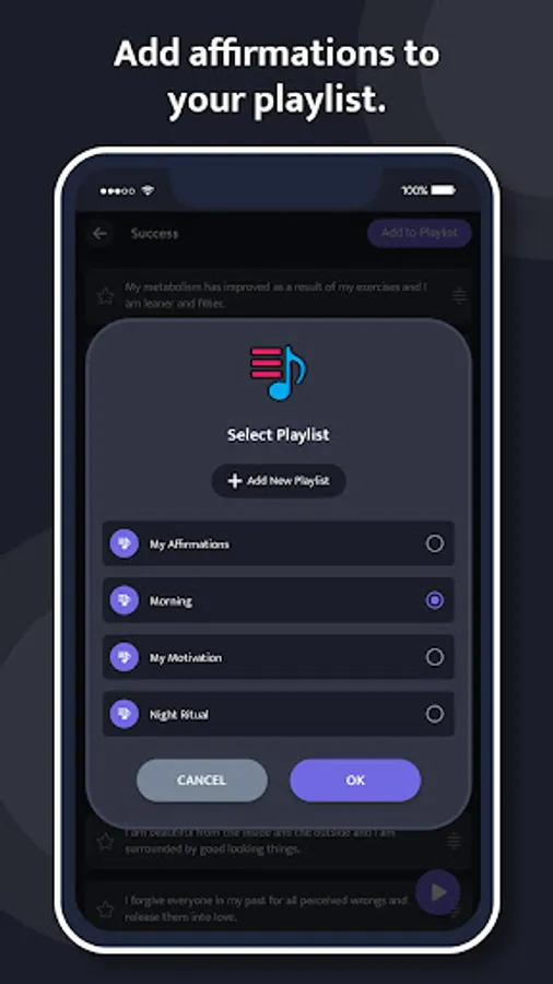 ⭐ You can create your own custom playlist of your affirmation collection. You can add app’s affirmations to your custom playlist.