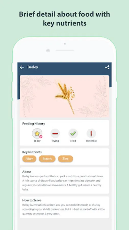 The app contains all the basic foods that are really nutritious and easily available. The app also contains detail about the food, key nutrients in it, and how to serve it to the baby ideas. You can also add your food with some notes. You can search foods by age of baby and categories like allergen, go for organic, and iron-rich. You can share food detail with your friends or family.