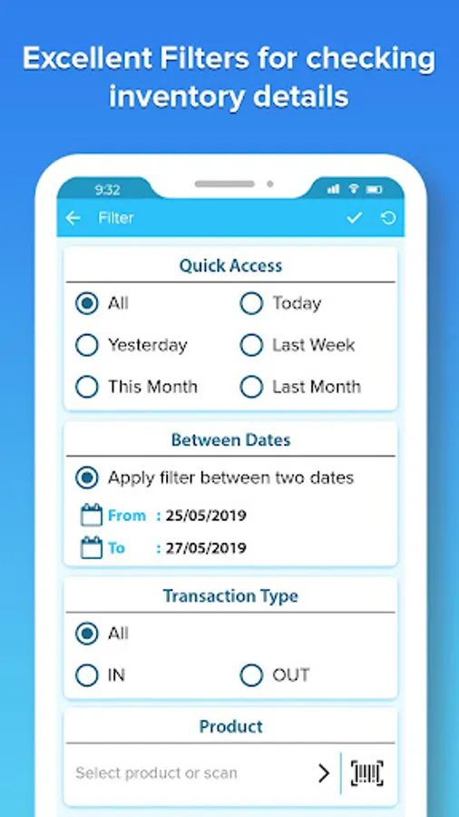 App also provides facility to generate excel or pdf reports of products or transactions.