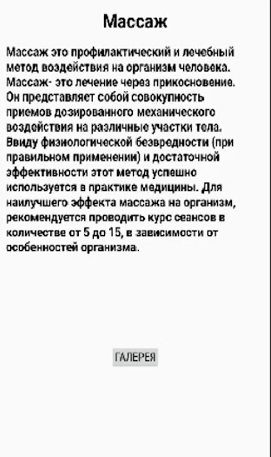 Массаж – это терапевтический метод, представляющий собой совокупность приёмов механического и рефлекторного воздействия на ткани и органы. Массаж осуществляется руками или с помощью специальных аппаратов
