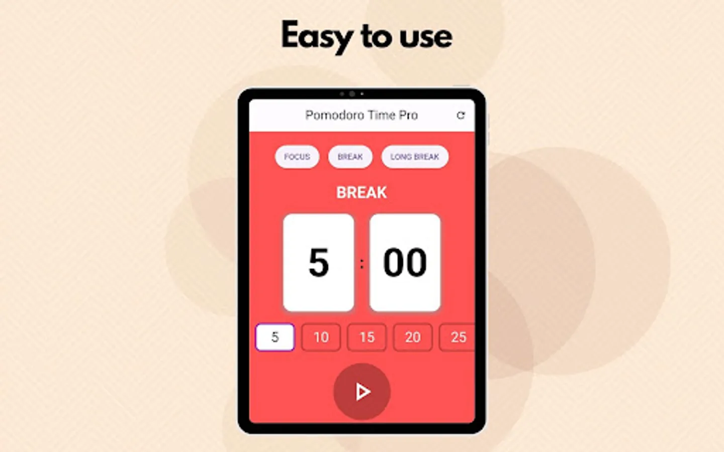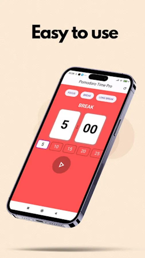 Our app features a sleek and user-friendly interface that is easy to navigate. You can customize your work and break intervals, choose your own alarm sound, and even enable or disable vibrations. You can also set goals for each Pomodoro cycle and track your progress over time. The app even allows you to export your data in CSV format so you can analyze your productivity and make adjustments as needed.