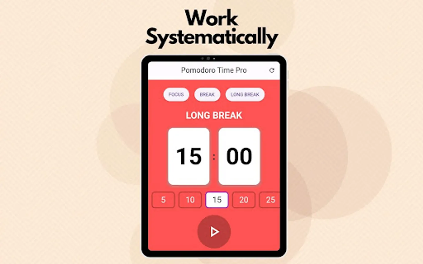 With Pomodoro Time Pro, you can break down your work into manageable chunks of time using the Pomodoro technique. This technique is based on the idea that you work for a set amount of time (usually 25 minutes) and then take a short break (usually 5 minutes). After completing four cycles, you take a longer break (usually 15-30 minutes). This helps you stay focused and avoid burnout.
