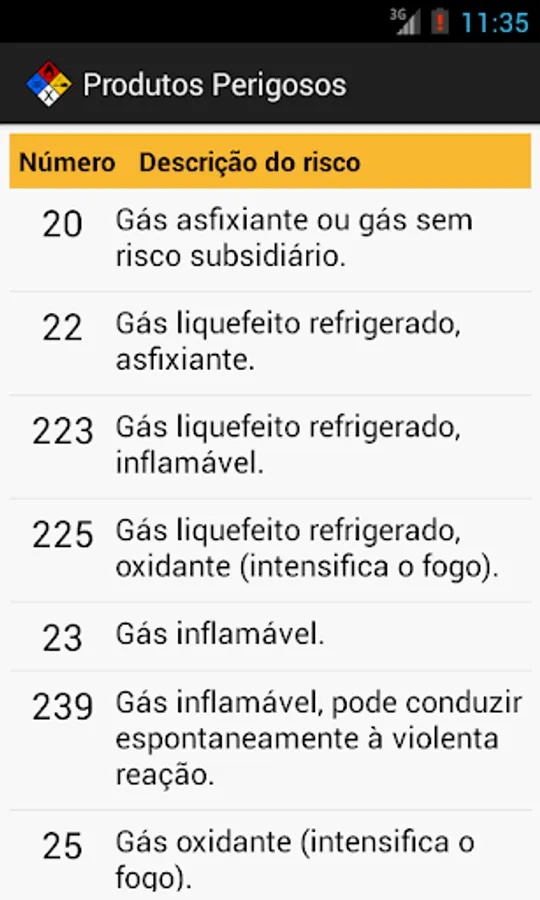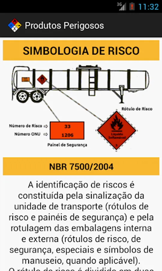 Based on Regulation of Land Transport of Dangerous Goods ANTT and NBR 7500 ABNT and emergency manual ANPC Portugal.