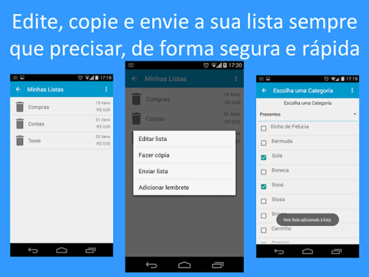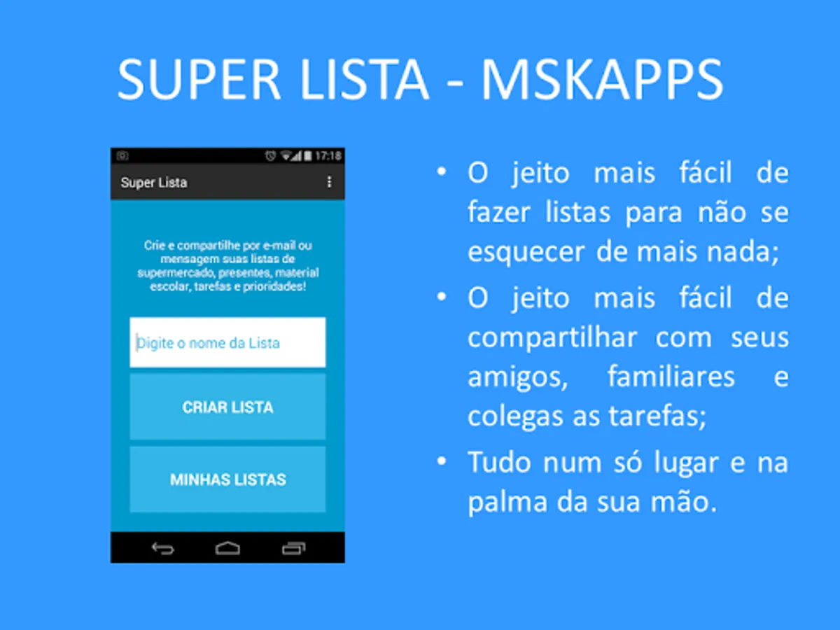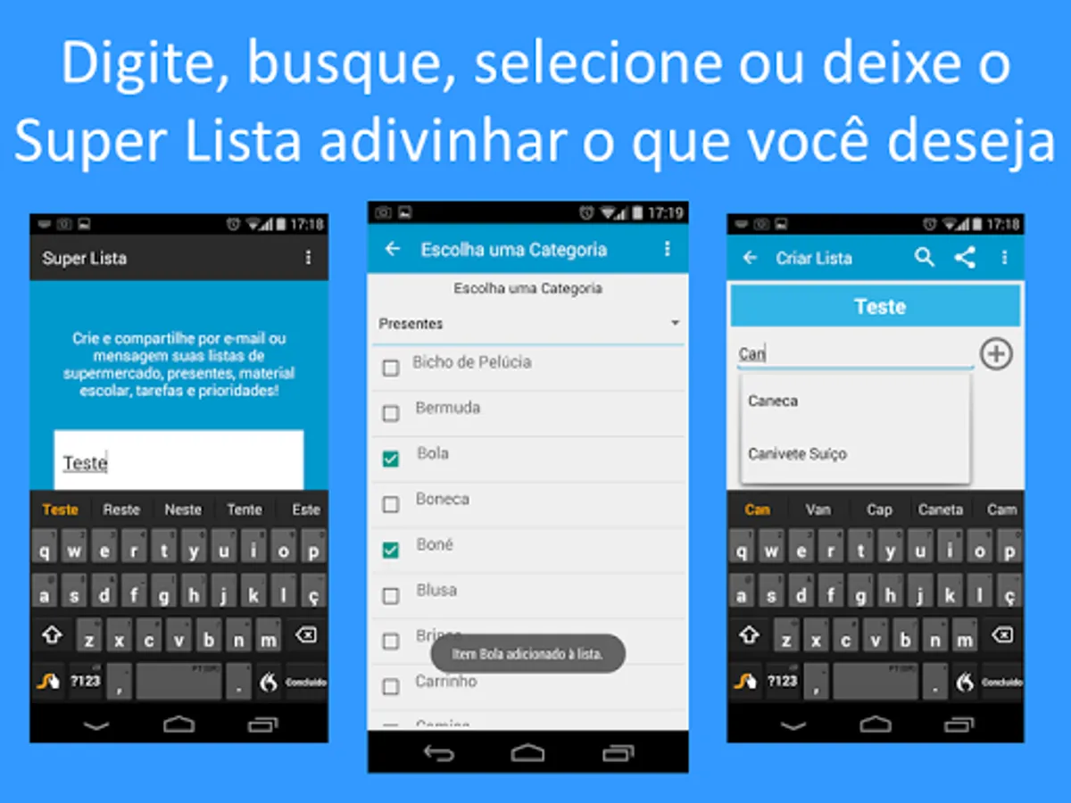 The Super List application was created to make easy the development list of shopping, gifts, tasks and priorities. All lists are created and saved in the device for editing and sending at any time. Do not waste your good ideas, keep everything in the cell and organize your day. You can use the phone or send to anyone you want. Your lists will be sent by email or text message. Share your lists with anyone. Back up the lists on the SD Card. Create and edit all kinds of list.