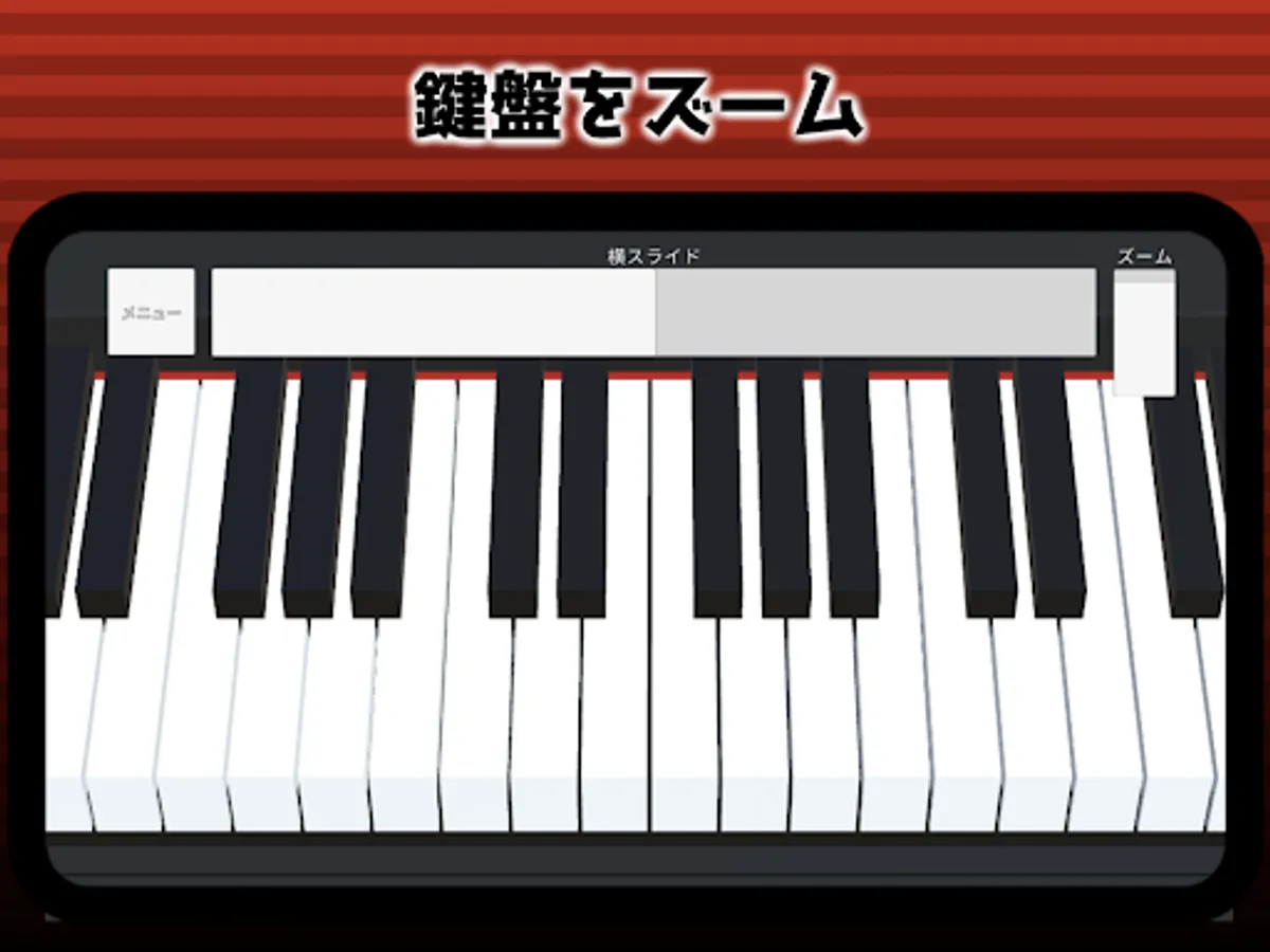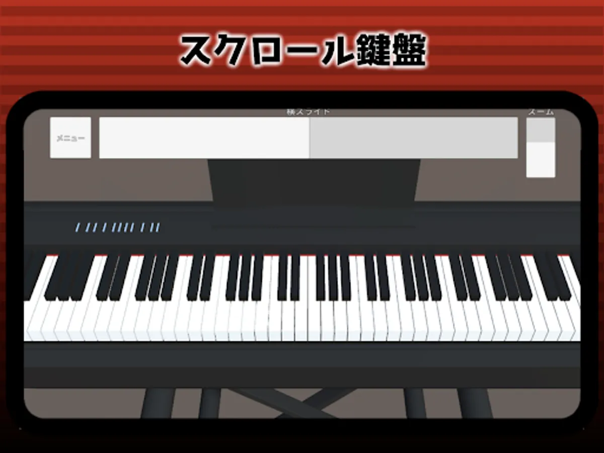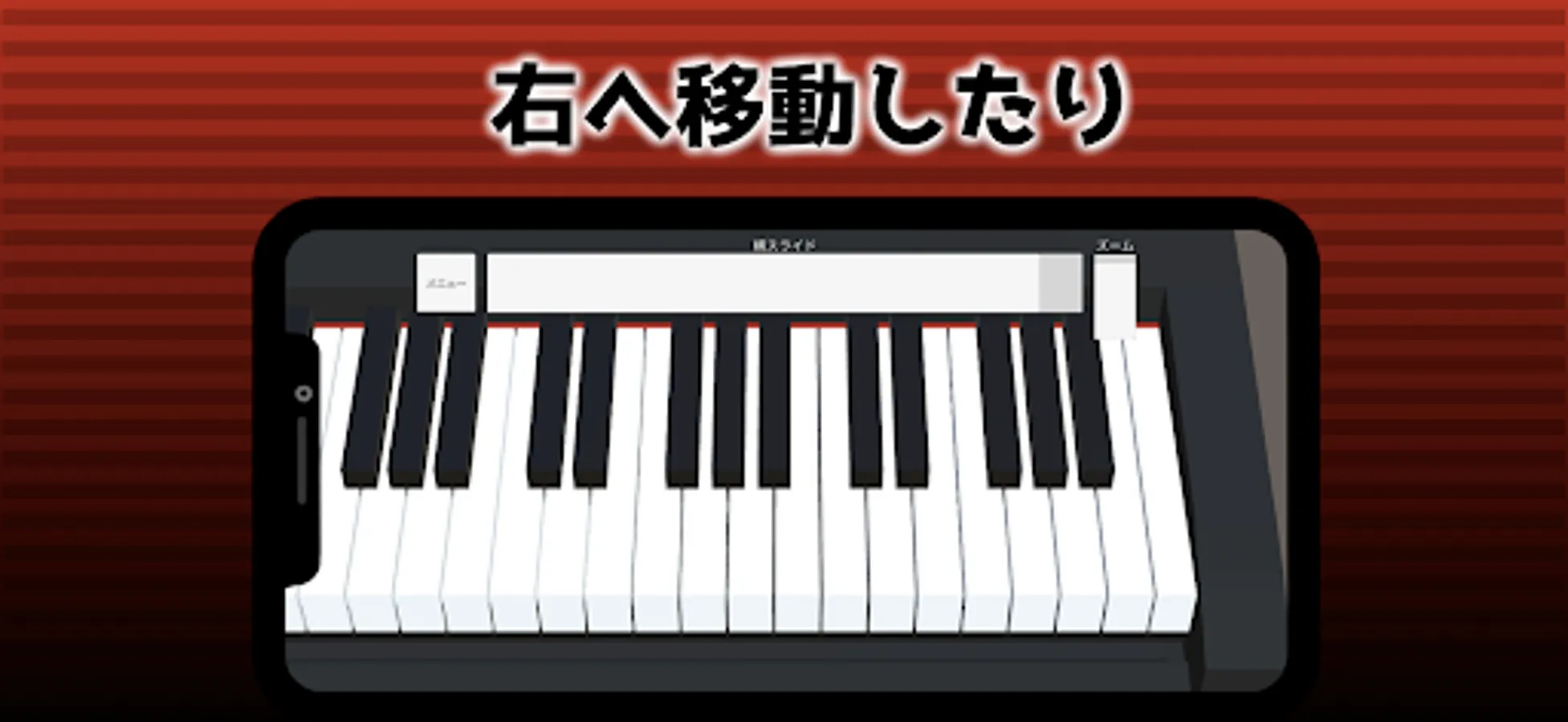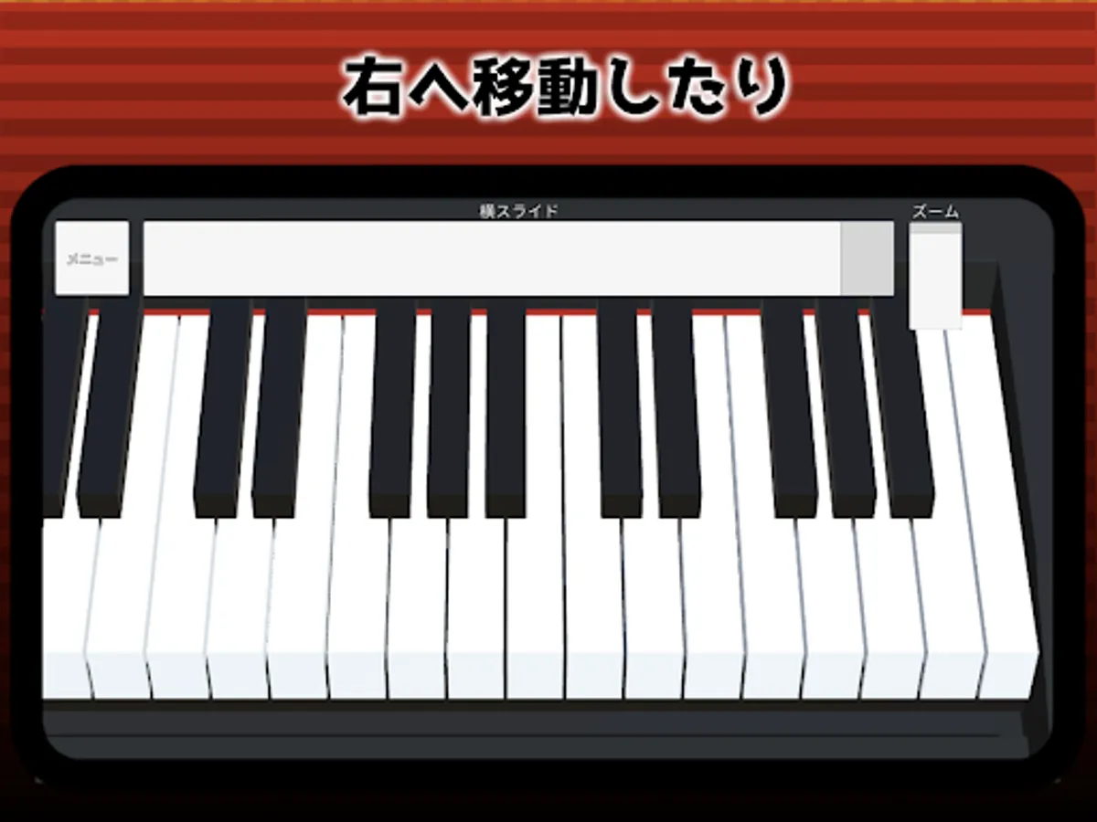 You can move left and right by sliding the scroll bar above the piano. Simultaneous pressing of the keyboard is supported.