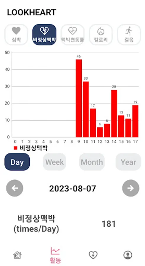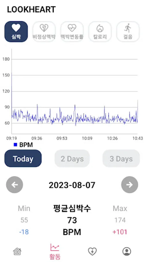 Accurate measurement is possible in real time without noise during daily life, and heart disease prediction is possible through easily managed and stored data. You can check the user's heart rhythm waveform based on the ECG signal in real time, and provide a notification service when an abnormal heart rhythm occurs. You can check history information with a chart configuration optimized for each information, from heart rate information to abnormal pulse rate, calorie consumption, number of steps, step distance, and temperature, and a search function by period.