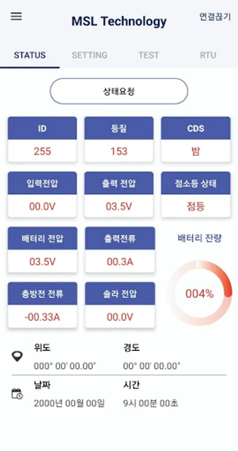 You can check and adjust the status of the light fixture, a product of MSL Technology, using wireless communication (Bluetooth). You can see the status of each lamp (light quality, remaining battery level, etc.)