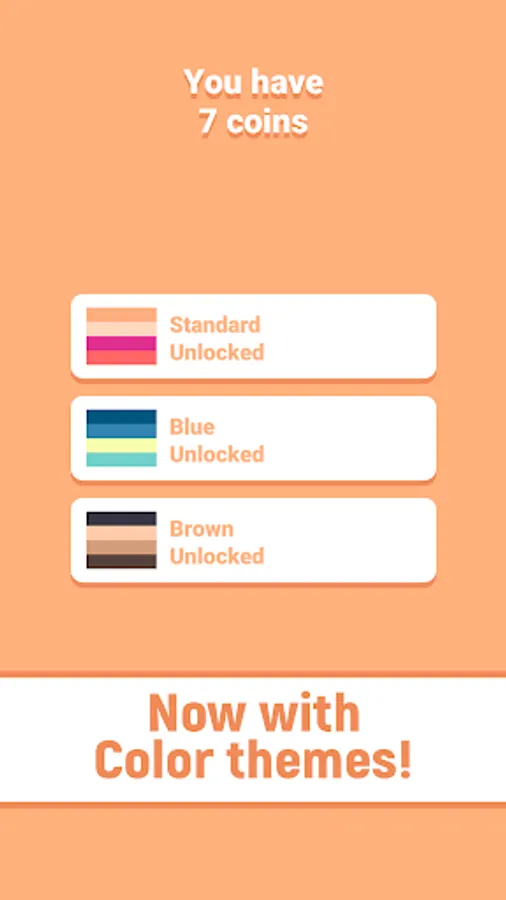 Collect coins that fall along with enemy cubes! You can spend coins on the color schemes of the game.