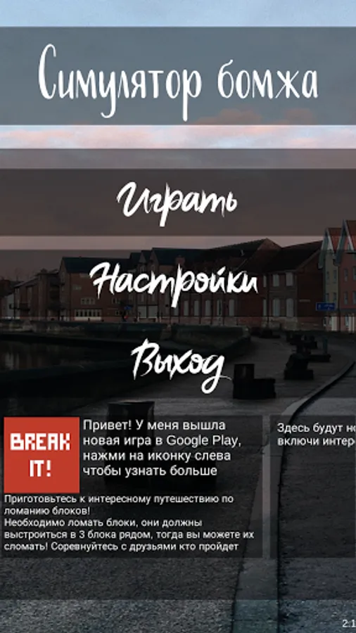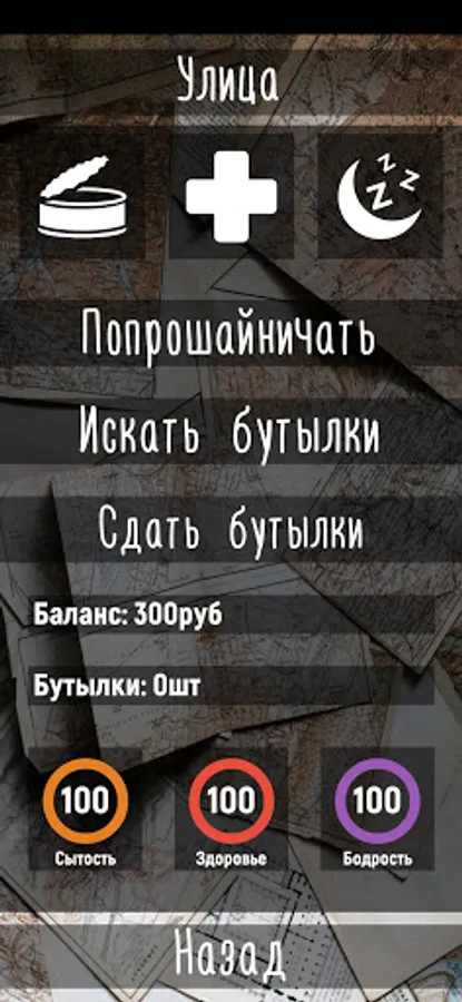 In this game you have to work for food, climb through the garbage dumps in search of an overnight stay, medicine or food.