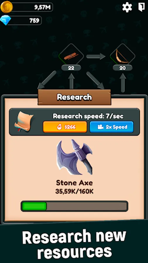 Research recipes for new resources, you can upgrade the speed of learning for coins that you can get by selling other resources.