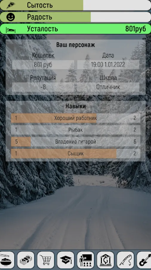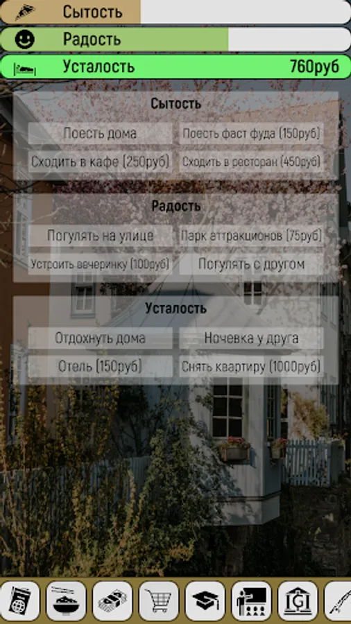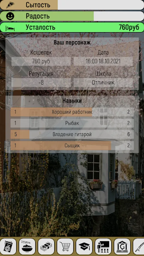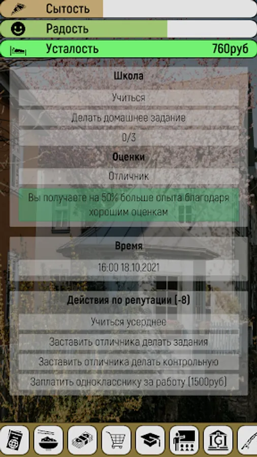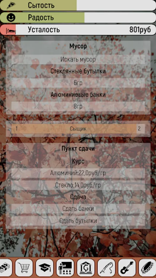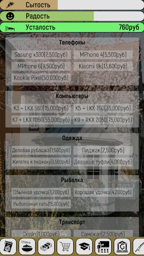 The game has many different ways to both spend and make money. For example, you can start collecting bottles by returning them, or buy a phone and work as a delivery courier, get a job in a company and work as a sales manager, or just do programming on your pc.