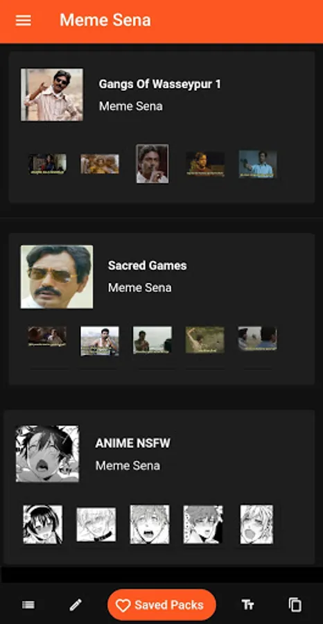 - After installing memesena app you will open the main window which will give you numerous options to choose your favorite set of stickers.