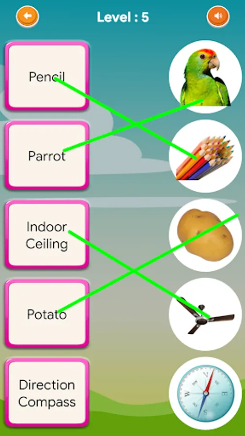 You just need to use your finger to draw a line and match the English word with its picture. You need to match all the 5 words to move next level.