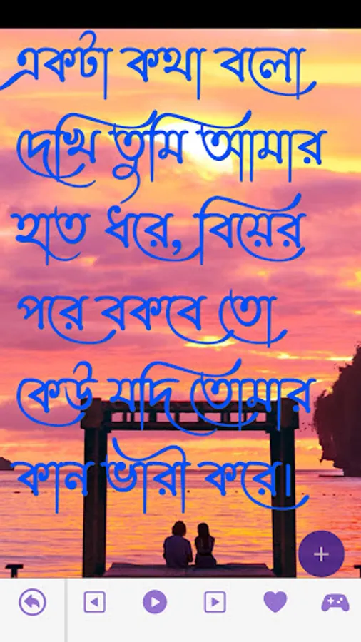 ◙ বাংলা Shayari আর ছন্দের জন্য আমাদের অ্যাপটি অনন্য। SMS for Girlfriend এবং SMS for Boyfriend এর জন্য আমাদের অ্যাপটি আপনার নিত্যদিনের সঙ্গী।