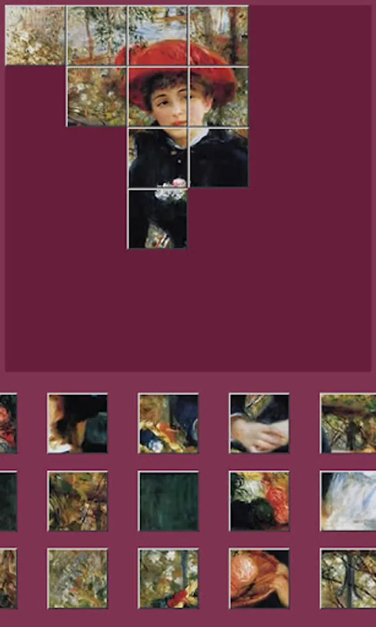 7 difficulty levels (16, 36, 64, 100, 144, 196 and 256 pieces)