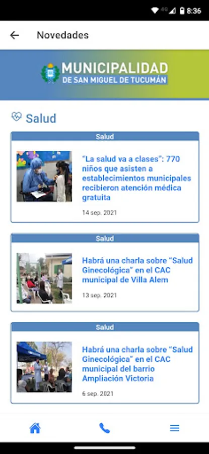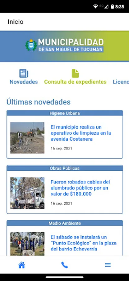 The application of the Municipality of San Miguel de Tucumán (Tucumán, Argentina) shows the latest news of the municipality, allows you to consult the status of the files, obtain shifts for the driving license, pay the CISI and CISCA tax bills.