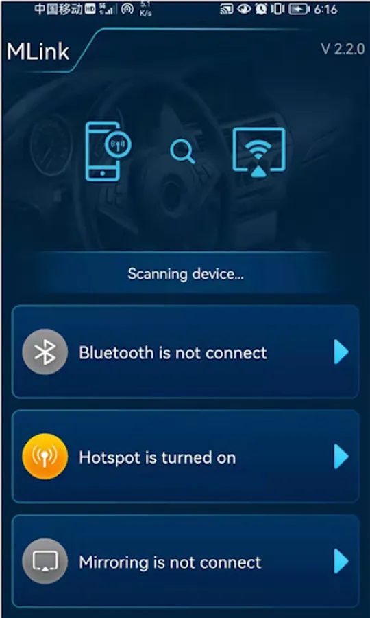 Android wireless projection to vehicle
