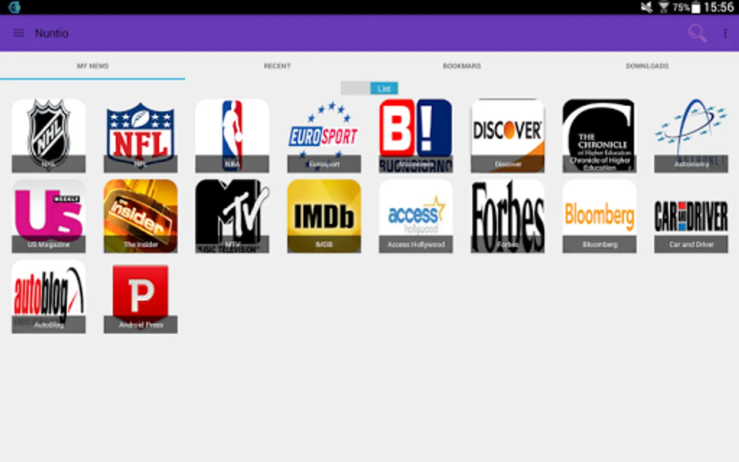 Nuntio is the easiest news app in Android Market ! with a very simple Material design interface with many features to let you read / listen /watch your favourites news.