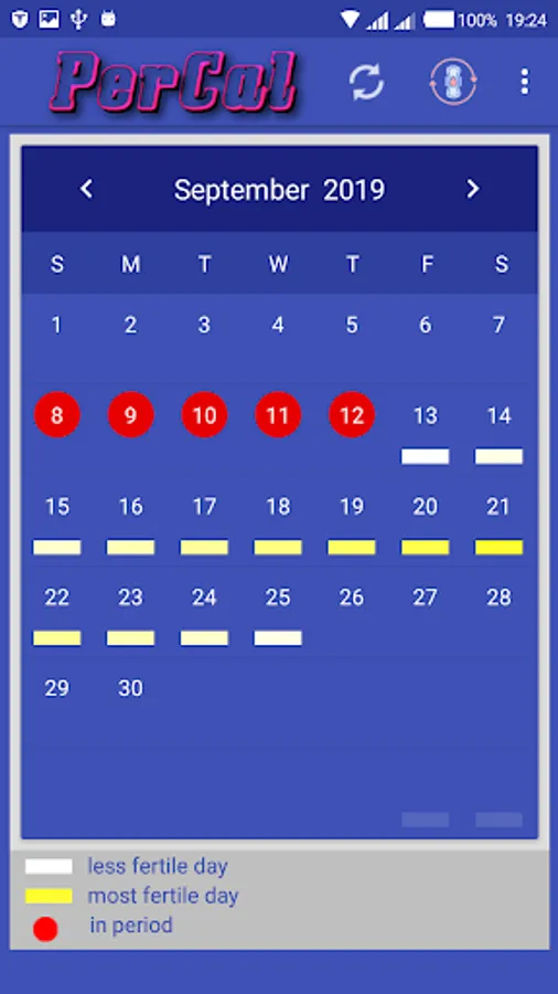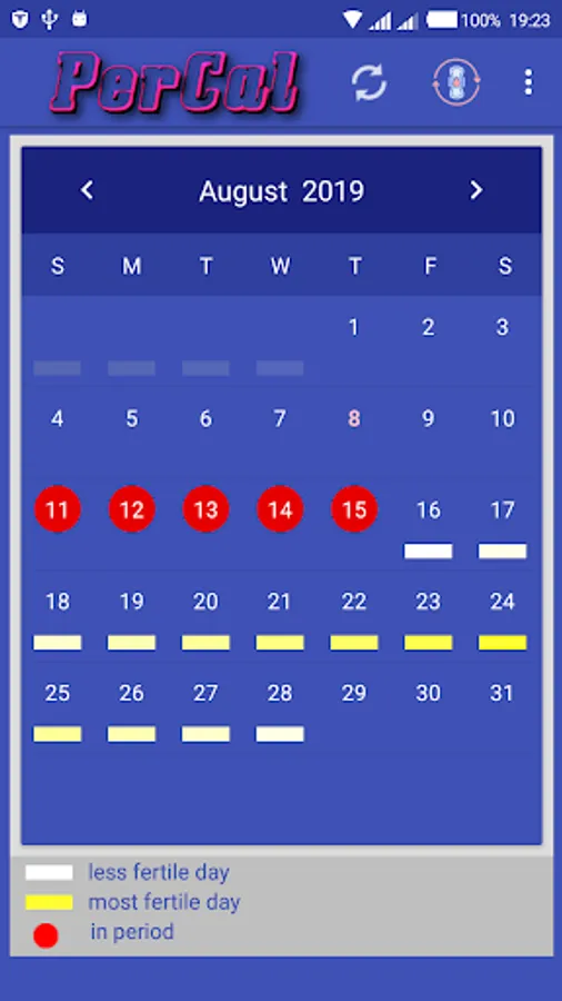 Period Calendar (PerCal) is a women Calendar App designated for helping to track and manage monthly Period records.