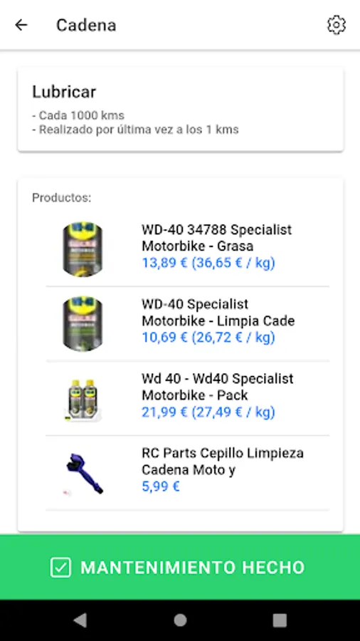We help you automatically find products and spare parts to carry out maintenance and services such as oil change, brake fluid change, filter change, spark plug change, tires or transmission chain. When you create a vehicle, spare parts for vehicle components or vehicle repairs will be automatically generated.