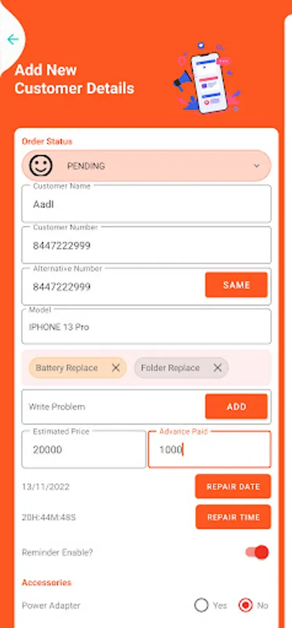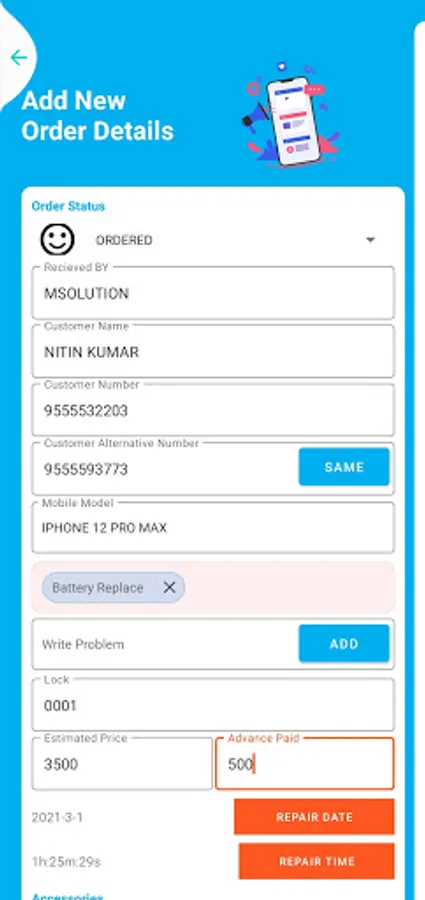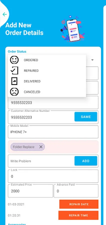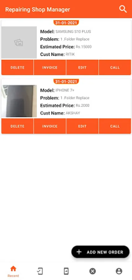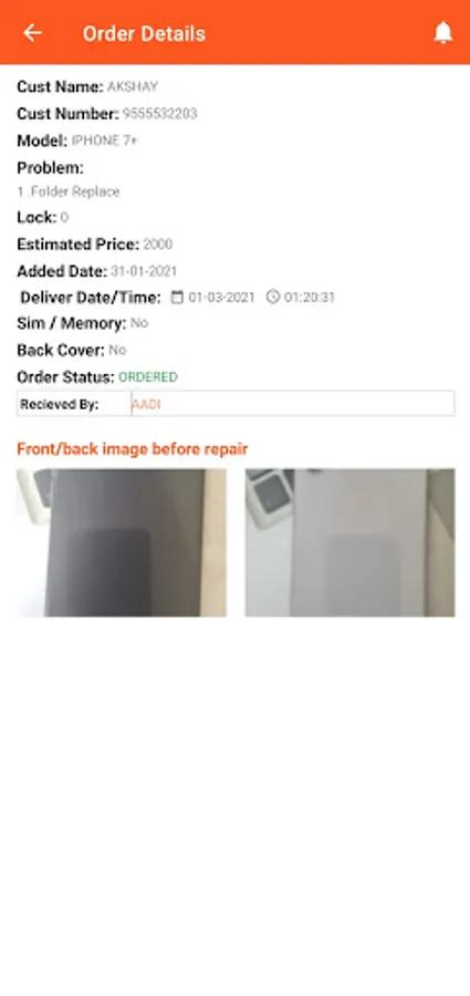 1- Manage all Repairing order in one place & Direct Call Feature to Customer.