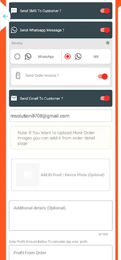 4- Automatically send WhatsApp SMS/ email send to Customer