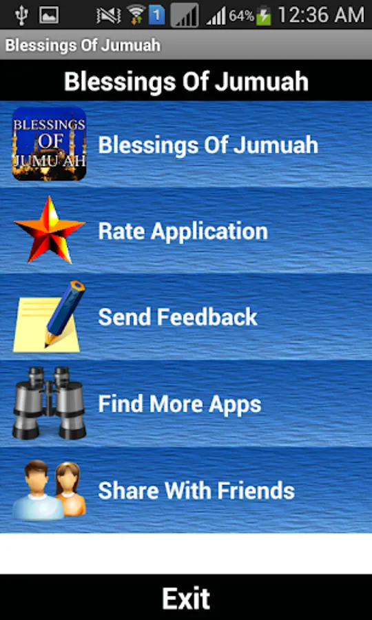 This app contains all about the blessings of jumuah (friday) in islam. with complete transliteration chart. by QURAN O HADITH how we spend our day. and how our Prophet offer this. and when HE offer 1st time . some good works regarding islam on this day. reciting of surahs and the benefits.