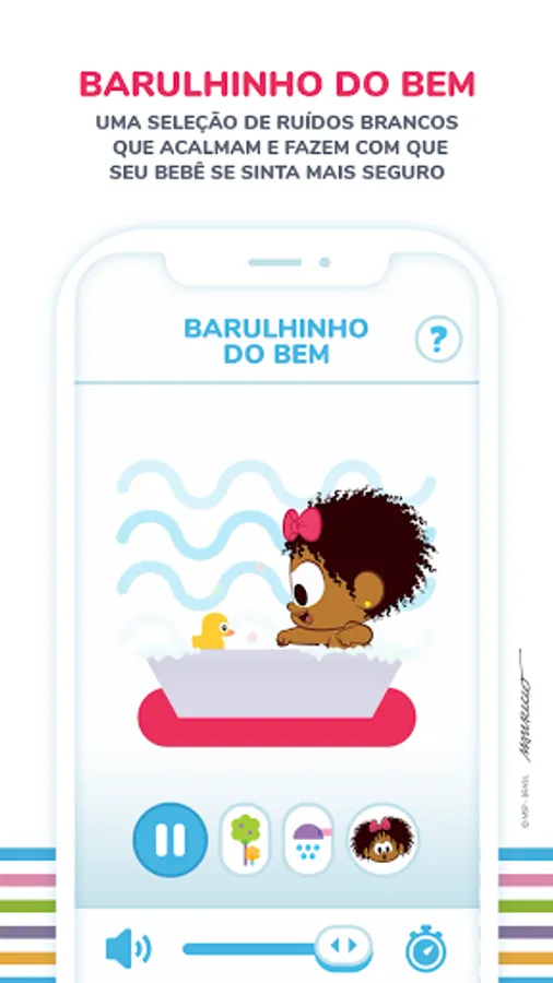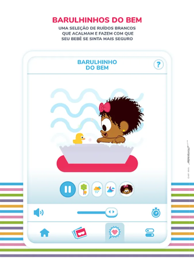 Did you know that there are noises that are good for your baby? The app features a selection of white noises that soothe and make your baby feel safer. It can be sounds of nature, appliances or even heartbeats!