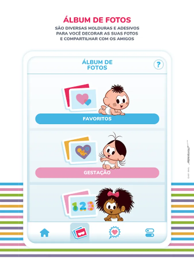 With the photo album you can save your baby's biggest adventures with the help of Turminha. There are several frames and stickers for you to decorate your photos and share with family and friends.