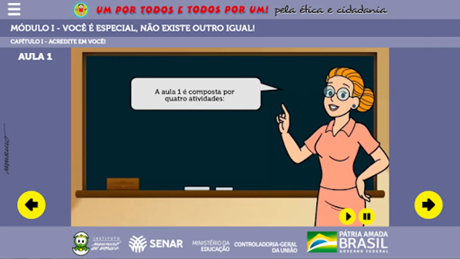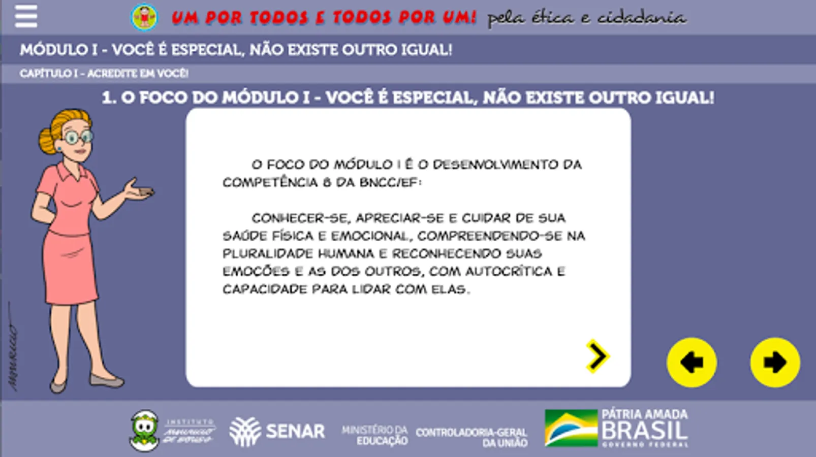 Program One for All and All for One! For Ethics and Citizenship - Teacher's Notebook. In this App you have access to EAD so that you, the teacher, can apply the program in addition to practicing the BNCC standards in the classroom.