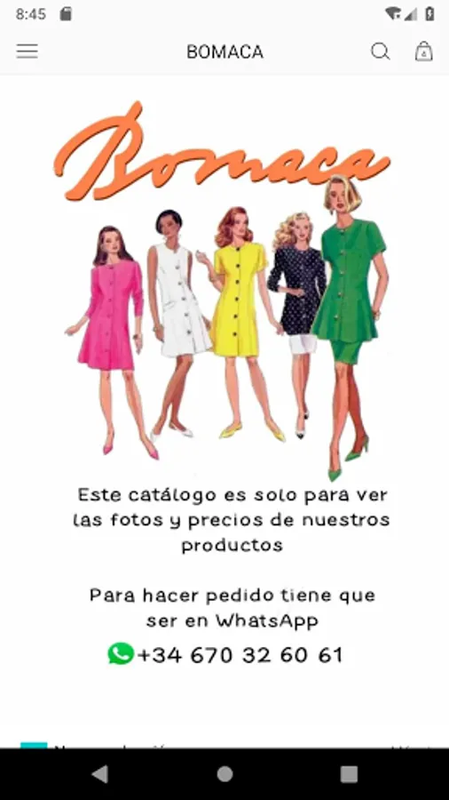 We are a wholesale company with more than 4 years old, and the BOMACA brand has been in the market for more than 9 years, Pioneers in the early fashion sector and years of experience with a wide collection. Our article is for the female sector and extends from Spain and the rest of the countries. This collection is only for professionals, only wholesale. Once you download the application, our staff will contact you to explain the process to follow.
