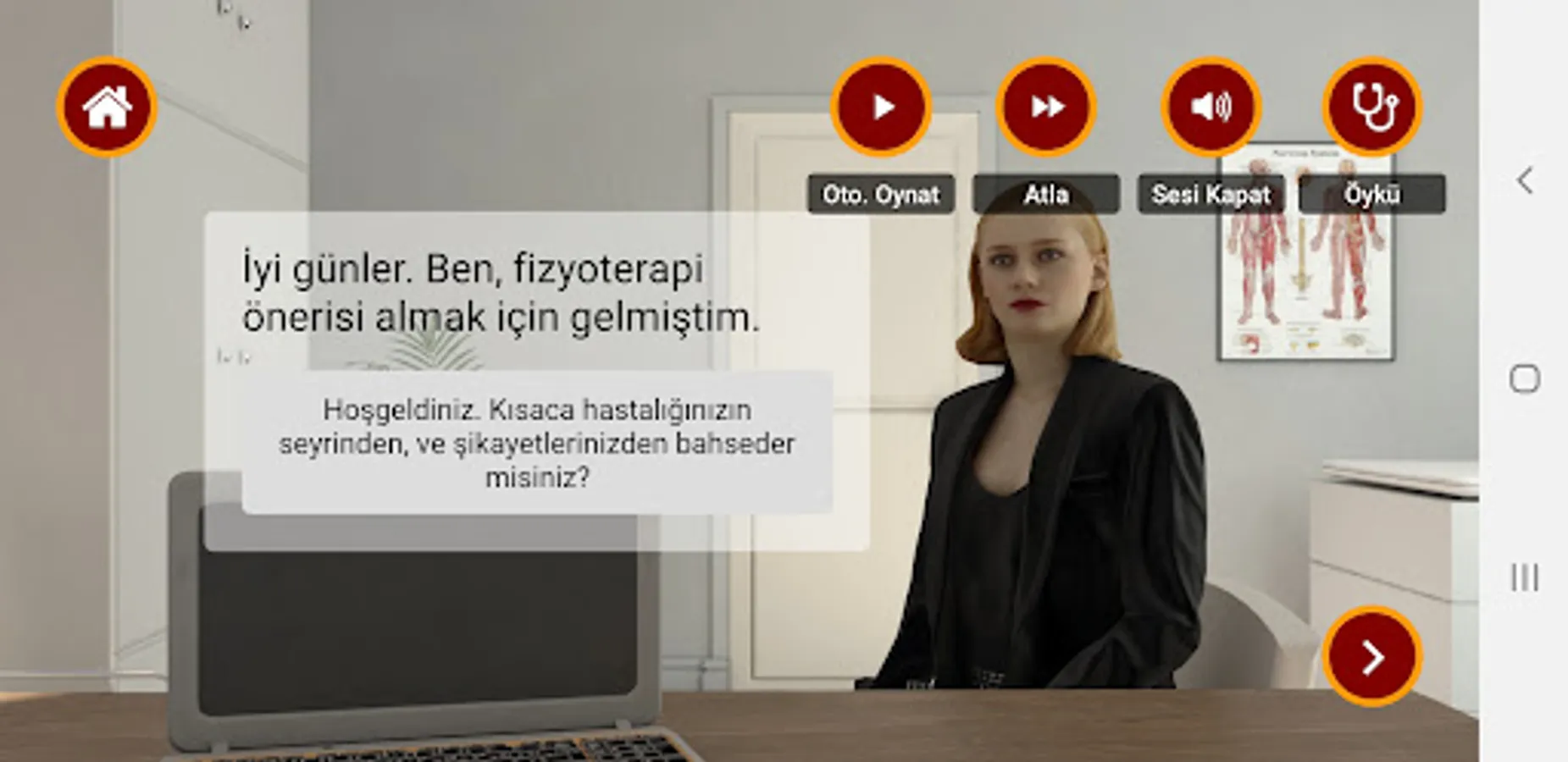 This application has been prepared for the students of the physiotherapy and rehabilitation department by changing the personal information of the patients over realistic scenarios to give examples of clinical applications in Multiple Sclerosis (MS).