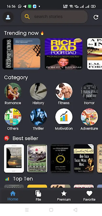 This is a reading and entertainment platform .in this included many categorized stories romance, history, adventure etc. you can read your