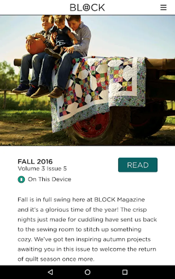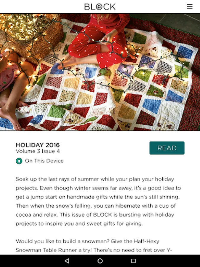 Get ready for a brand new digital experience with this BLOCK Magazine app! We had such a positive response to our Quilting Tutorials app that we knew we had to bring BLOCK to your screen next. That led us to create this BLOCK mobile app, just for you! Thank you for being a part of this mobile adventure with us. We will take it one step at a time together!