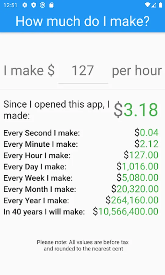 See how much money you make every second, minute, day, etc, and watch it count in real time.