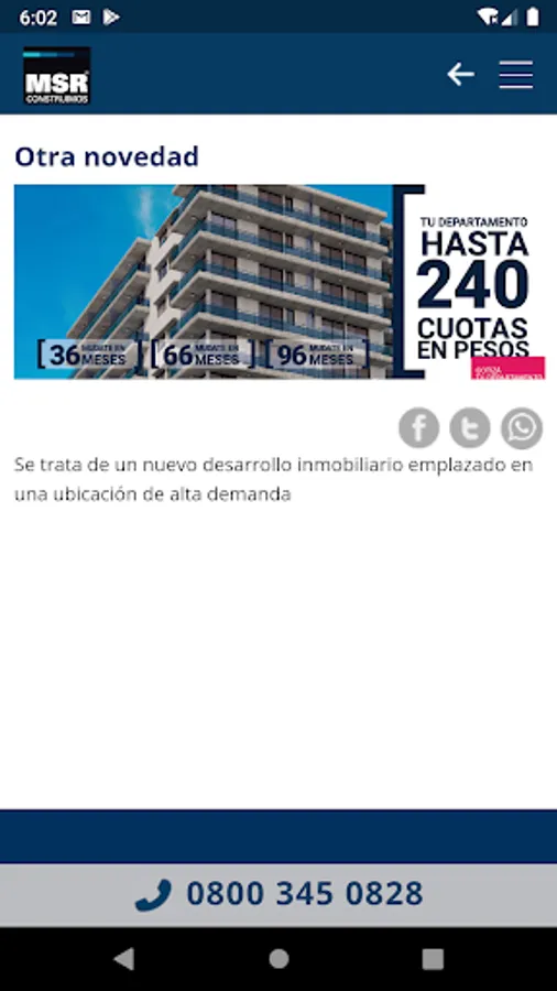 Mi MSR es una aplicación gratuita que MSR Constructora SA pone a disposición de sus clientes. Una nueva herramienta que les permitirá acceder a todas las novedades y lanzamientos; y realizar todas las gestiones con nuestra empresa de una manera ágil y rápida.