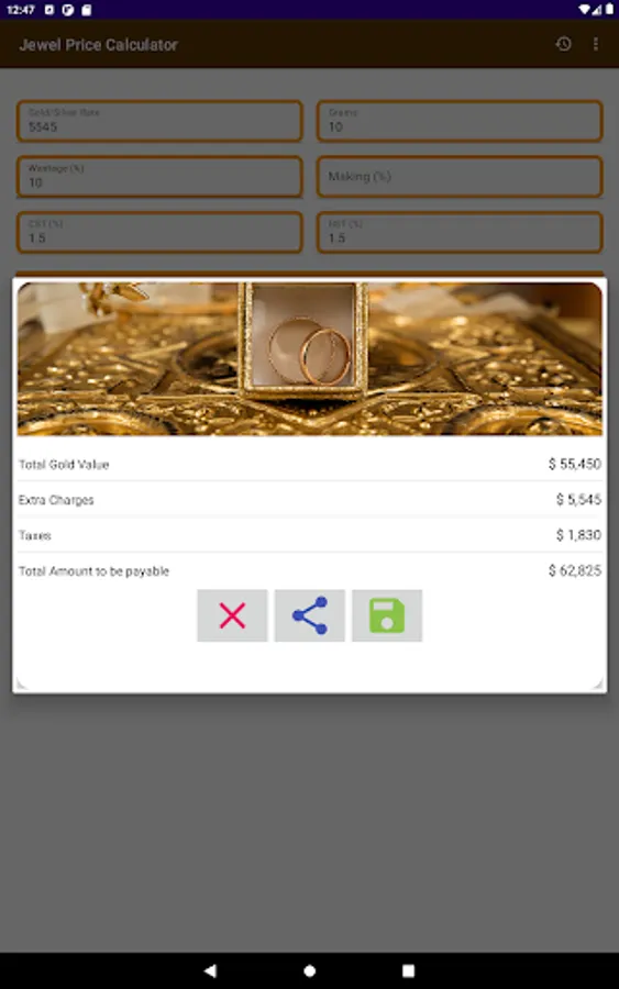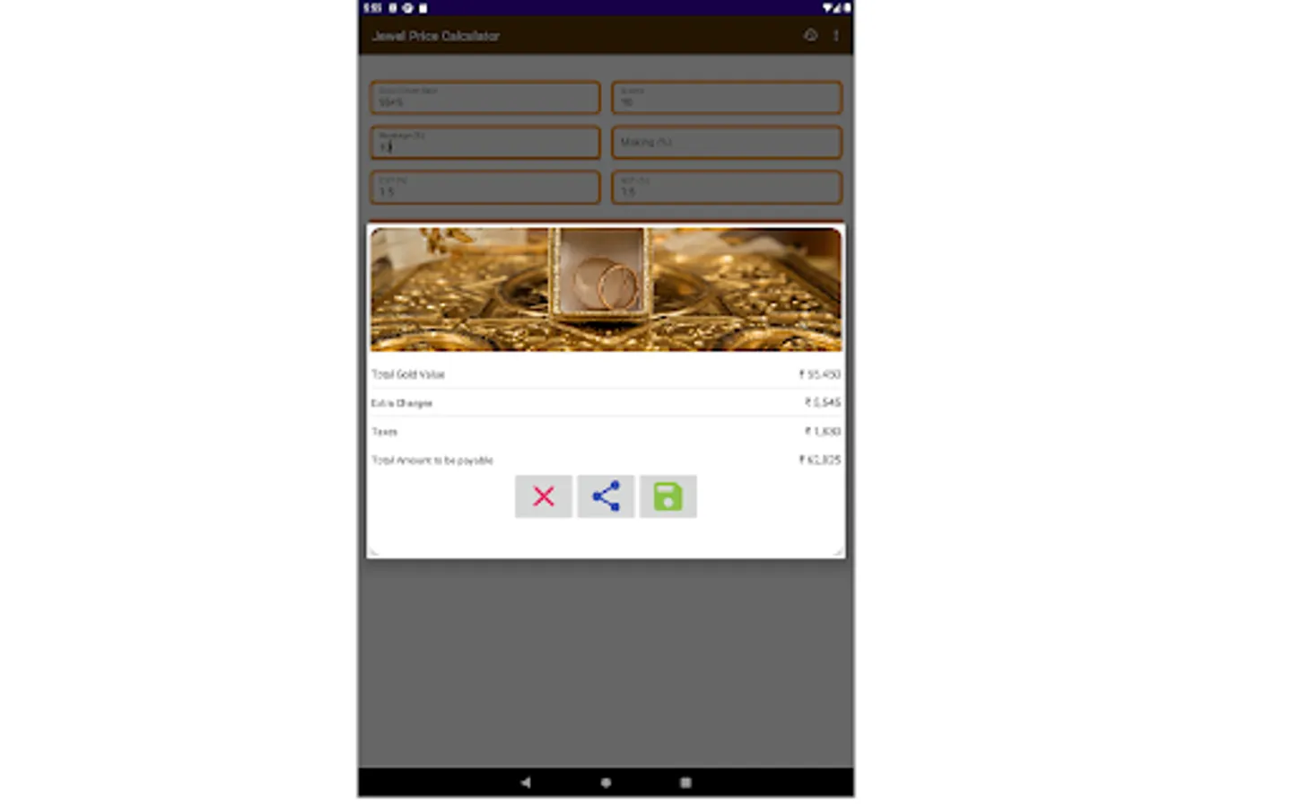 Additionally, our app provides a seamless sharing feature that enables you to share the calculated results with friends and family. Whether you want to discuss the price of a particular piece or compare prices, you can easily share the details through various messaging and social media platforms.
