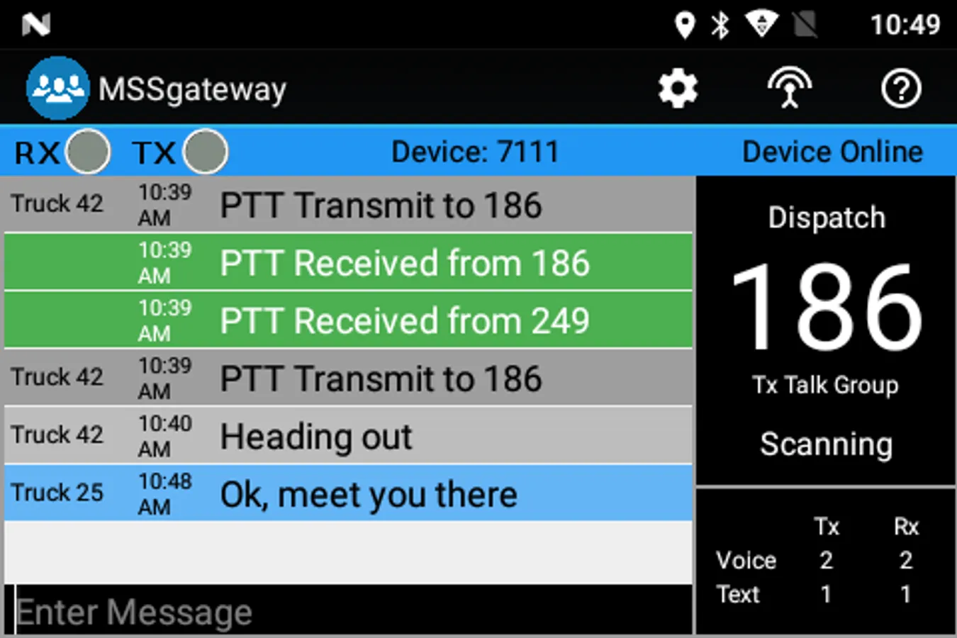 MSSgateway sets a new standard for Push-to-Talk (PTT) communications in functionality, value, and ease of use. Designed specifically for the Anysecu W2 Network Radio platform, the MSSgateway application enables intuitive voice and text communication over both satellite and terrestrial networks using the Viasat PTT service. Some of the differentiating capabilities include: