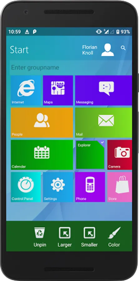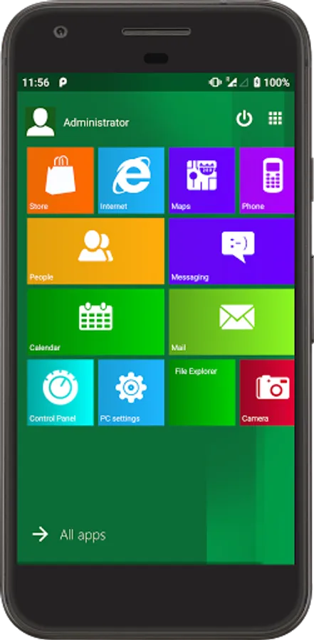 Other than in other launchers, this launcher is not imitating Windows Phone®, but a similar design to the Windows 10 tablet mode®