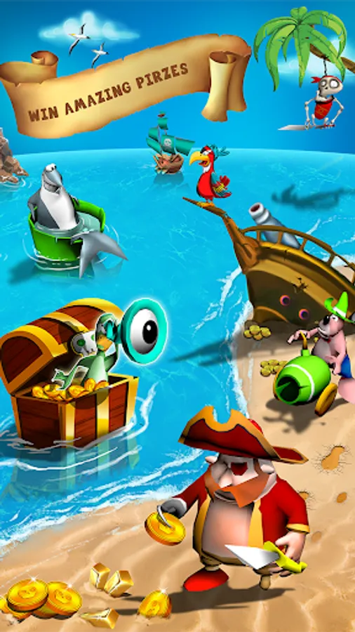 Pirates Gold Coin Party Dozer offers exciting features that will keep you hooked. The addictive gameplay will have you coming back for more as you drop and push coins with realistic physics similar to an actual coin pusher. Shake the pusher to get those extra coins! Launch Coin Walls to capture every coin, prize, and puzzle piece on the pusher. And when you're ready for some explosive action, drop the Giant Coin to splash coins and prizes into your hands. Special Coins add unique gameplay features to help you master the coin pusher, and the Mystery Box holds rare prizes waiting to be discovered.