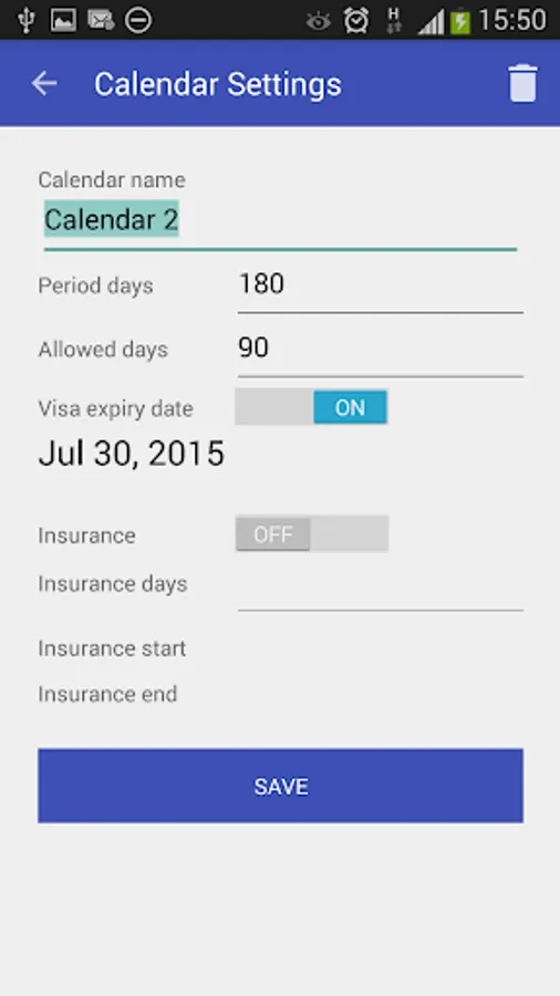 The application allows you to store history and next scheduled travel days. The calculator is a helping tool only; it does not constitute a right to stay for a period resulting from its calculation.