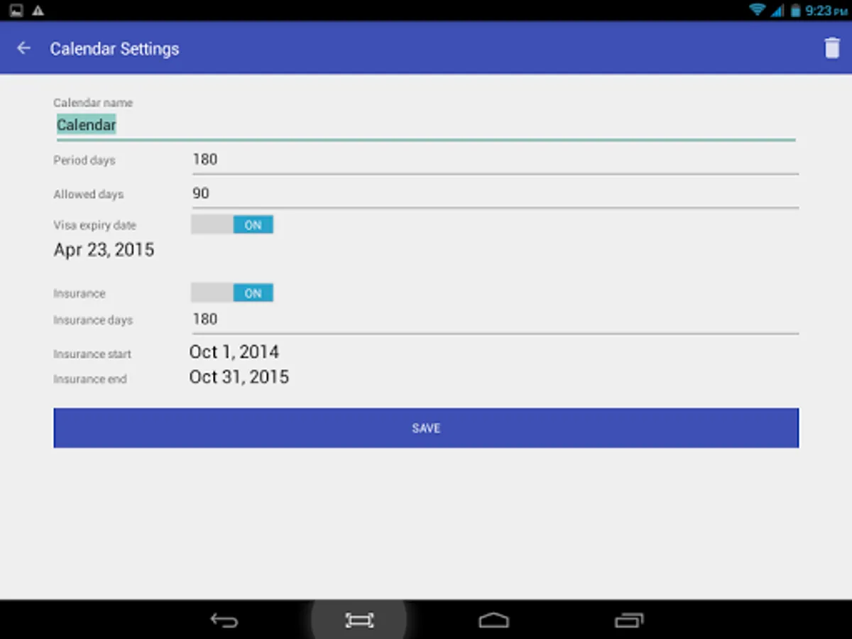 The application allows you to store history and next scheduled travel days. The calculator is a helping tool only; it does not constitute a right to stay for a period resulting from its calculation.