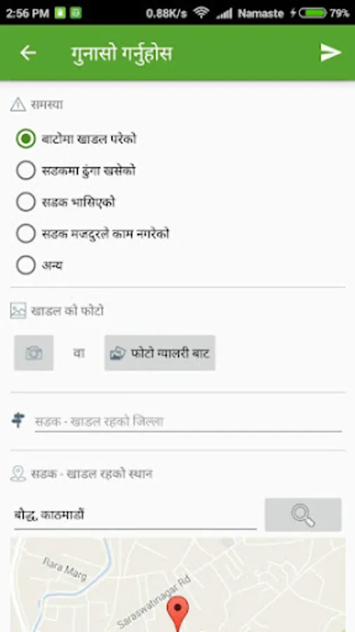 Nowadays, as we already know that Potholes are one of the top causes of accidents and they cause severe property damage to a vehicle. Drivers are at special risk of injury if they ride over a pothole. So through this application anyone can post a complaint report on this situation by giving exact location of the pothole. After they post, then Roads Board Nepal (rbn.org.np) helps to collect, manage and allocate fund for road maintenance to the Road Agencies (RA)