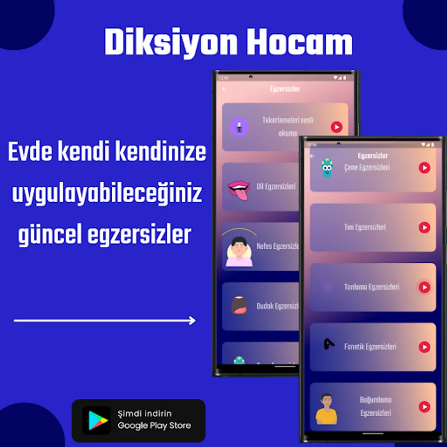 There are speakers that we are enchanted while listening, as well as speakers that we are really tired of listening to. The term that best expresses the difference between them is the art of eloquence, namely diction. Those who can turn their speech into art can convey what they believe to many more individuals with the way they present it to their interlocutors. As individuals in need of interaction in a social life, we owe a large part of the interaction we need to speech, which we call verbal communication. This skill, which we learn from birth, is the first and easiest way to express ourselves. When the lives of many people who are successful in life and who are shown as examples around them are examined, the value that immediately comes to the fore is that their social skills and environments are much wider. In order to have proper diction, which is the first condition of an effective communication, the practices and exercises we call diction exercises allow you to improve yourself. It will increase the quality of your communications in direct proportion. The diction exercises in the Diction Teacher application include a series of diction exercises that anyone who wants to have a proper diction can do.