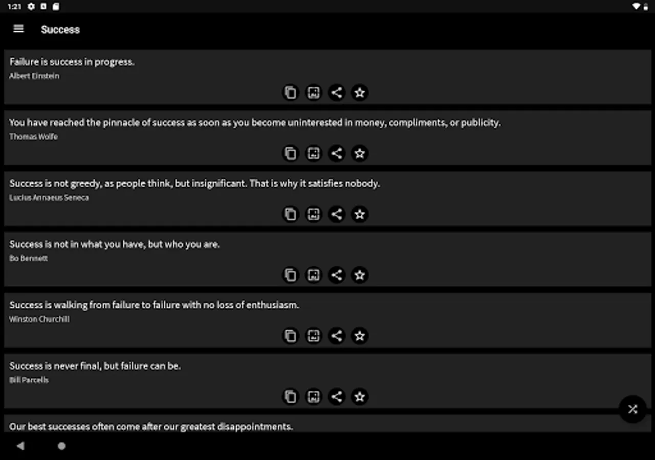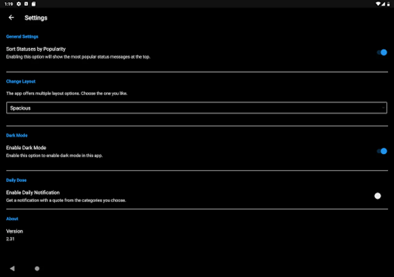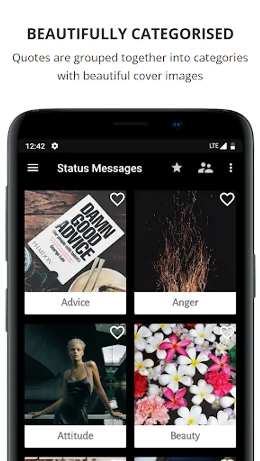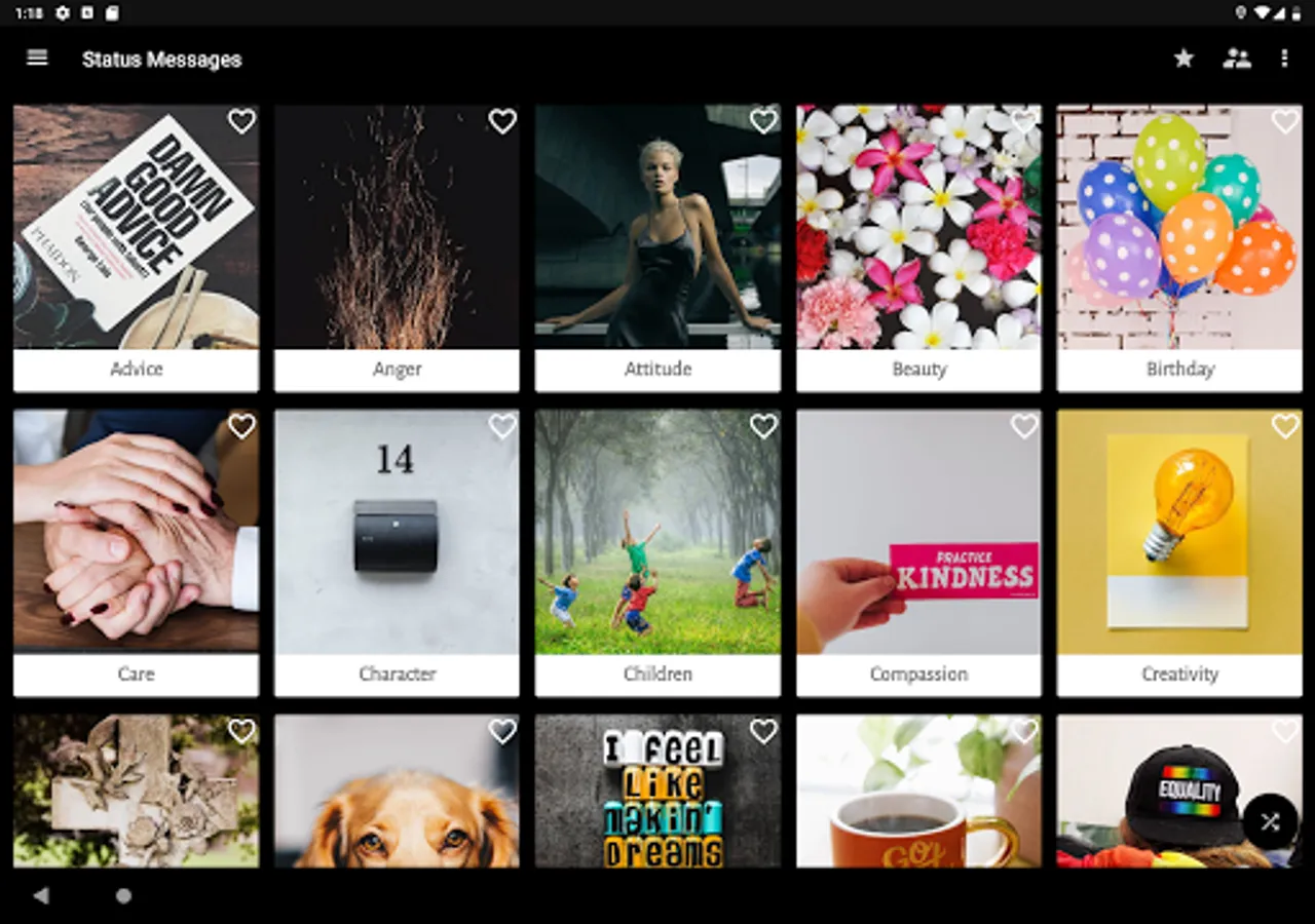 The app contains thousands of quotes, separated across dozens of categories. You can copy the status updates or share them with anyone you like. The app works completely offline.