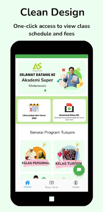 Dengan aplikasi Akademi Super, keseluruhan info tentang tuisyen kami kini dalam poket anda